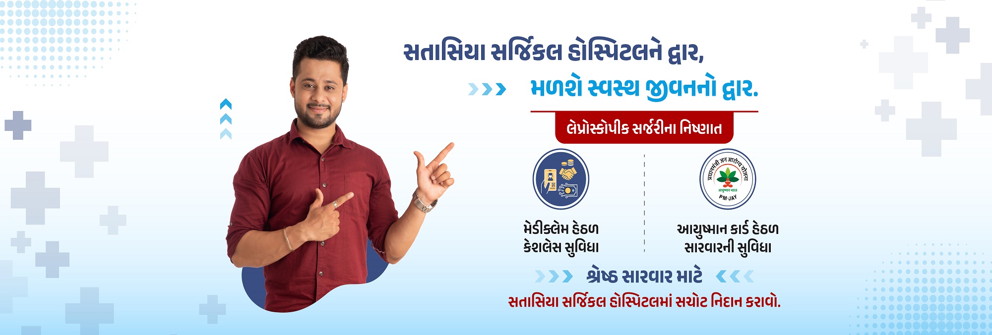 જુનાગઢ શહેર અને આજુબાજુના વિસ્તારના લોકો ને ખુશાલી સાથે જણાવવાનું કે, "સતાસિયા સર્જીકલ હોસ્પિટલ"" માં દર્દીઓને ભારત સરકાર ની આયુષ્યમાન ભારત" તથા "માં અમૃતમ" યોજના અંતર્ગત તદ્દન ફ્રી સારવાર આપવામાં આવશે.